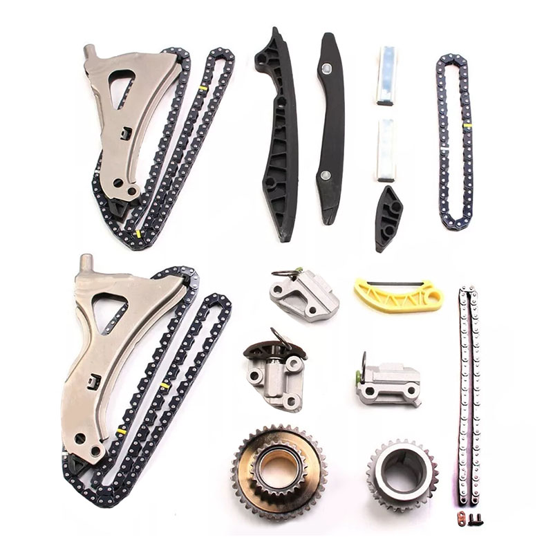 ٹائمنگ چین کٹ آٹوموٹو انجنوں کا ایک اہم جزو ہے، جس میں دھاتی ساخت، اعلیٰ ترسیل کی کارکردگی، اور زندگی بھر کے لیے تقریباً دیکھ بھال مفت ہے۔ یہ بنیادی طور پر انجن کے والو میکانزم کو چلانے پر کام کرتا ہے، اس بات کو یقینی بناتا ہے کہ والوز مناسب وقت پر کھلیں اور بند ہوں، اور عام سکشن اور اخراج کے عمل کو حاصل کریں۔ ایک ہی وقت میں، خاموش ٹائمنگ چین دانتوں کے سائز کے ڈھانچے کے ڈیزائن کے ذریعے شور کو کم کرتا ہے، آپریشن کو ہموار بناتا ہے اور طویل مدتی دیکھ بھال کے اخراجات کو کم کرتا ہے۔ ٹائمنگ چین کٹ میں اعلی بوجھ کی گنجائش اور اعلی صحت سے متعلق ٹرانسمیشن بھی ہے، جو تیز رفتار اور اعلی درجہ حرارت والے ماحول میں انجن کی کام کی ضروریات کو پورا کر سکتی ہے، اور مکینیکل آلات کی وشوسنییتا اور کارکردگی کو بہتر بنا سکتی ہے۔